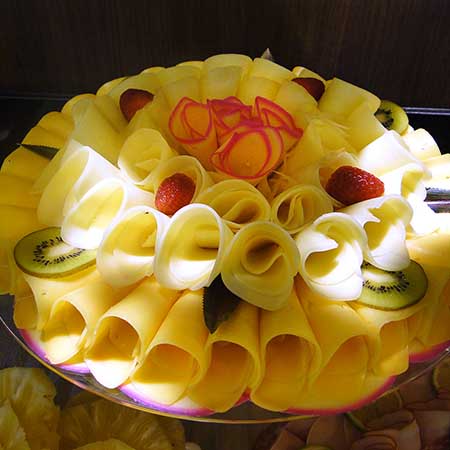 Diariamente saladas, pratos quentes, sobremesas, frutas. Preço por kg.