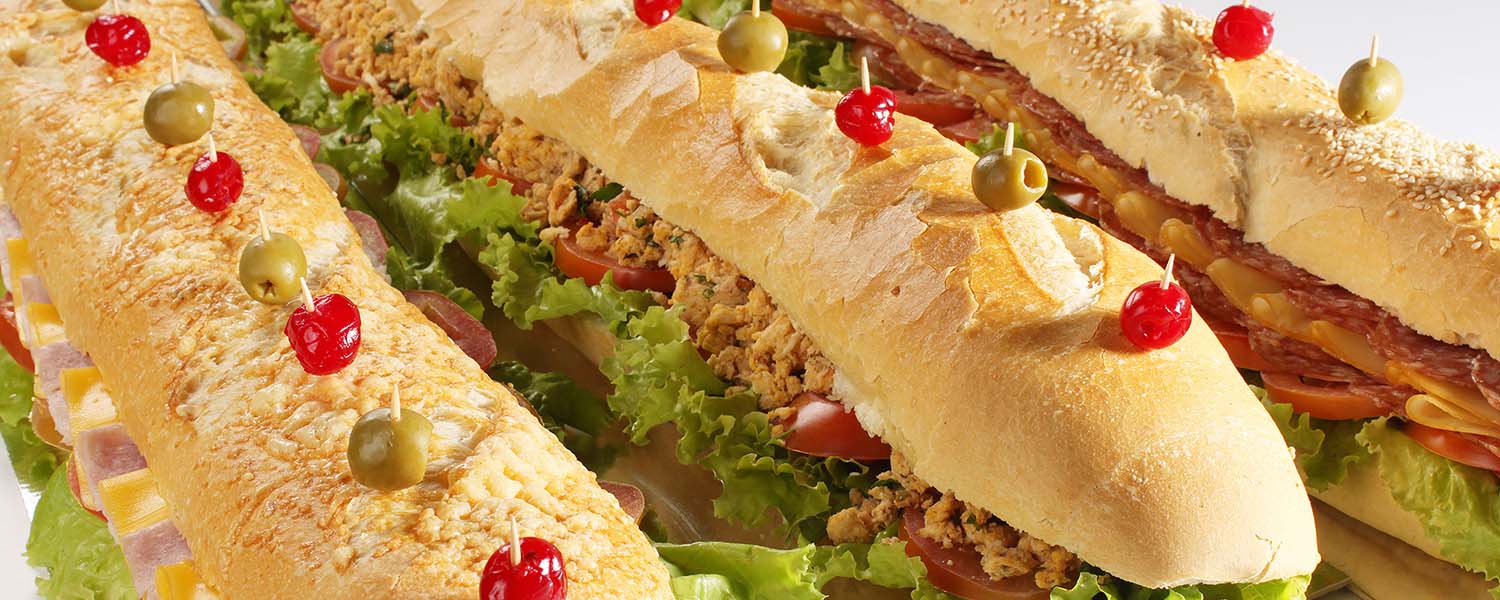 Blanquet de peru, queijo prato, alface e patê de azeitonas. |